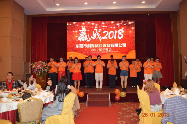 2018年元月26日,劍喬試驗設備于塘廈匯華酒店成功舉辦了2017年尾牙晚會,會上高朋滿座,劍喬總經理在會上發(fā)表致辭,表達了對各位合作伙伴一年以來大力支持的感謝,更是總結了2017年劍喬公司一年里的收獲及成長,并給優(yōu)秀員工及突出貢獻的人員給予表彰。再對劍喬2018年定下了發(fā)展目標及期許,晚會在一片歡樂祥和中進行。